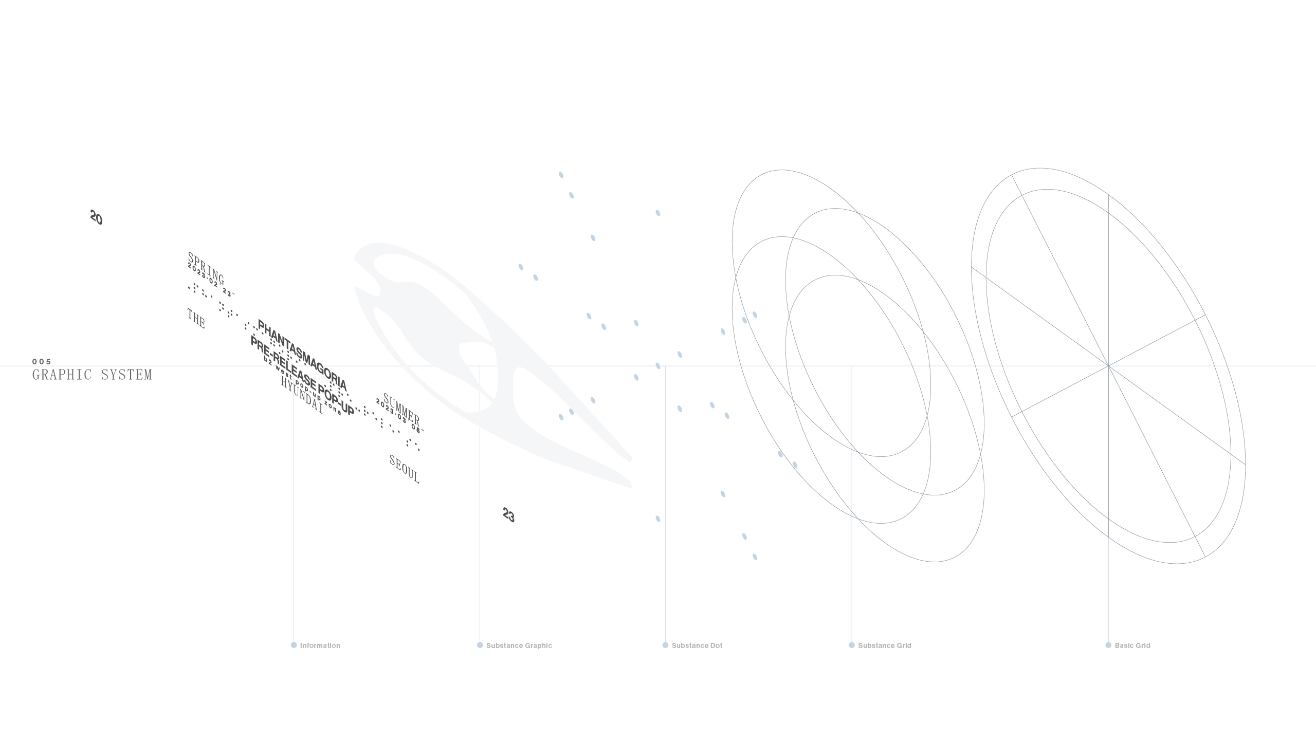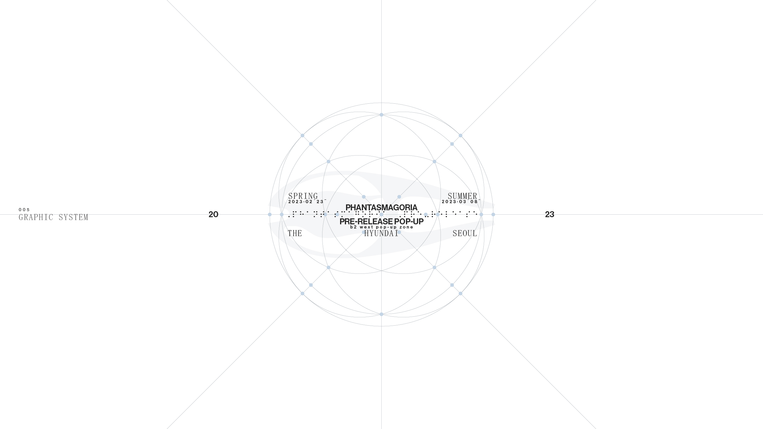 브랜드가 추구하는 유동적 형태와 대비되는 소재감의 에스테틱을 의복 이외의 영역으로 확장하며, 각자의 세계관을 갖는 컬렉션들을 포용할 수 있는 하나의 세계관을 형성했다. 이는 흩어진 세계들을 하나의 중심으로 끌어모으는 소용돌이와 같은 형상으로 발전했다.